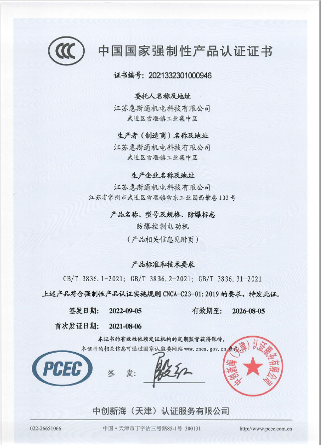 防爆控制電機CCC證書