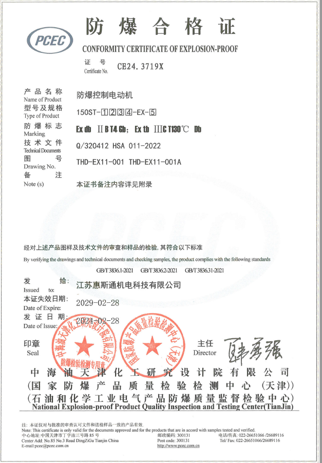 150基座ⅡBT4大扭矩防爆控制電動機證書